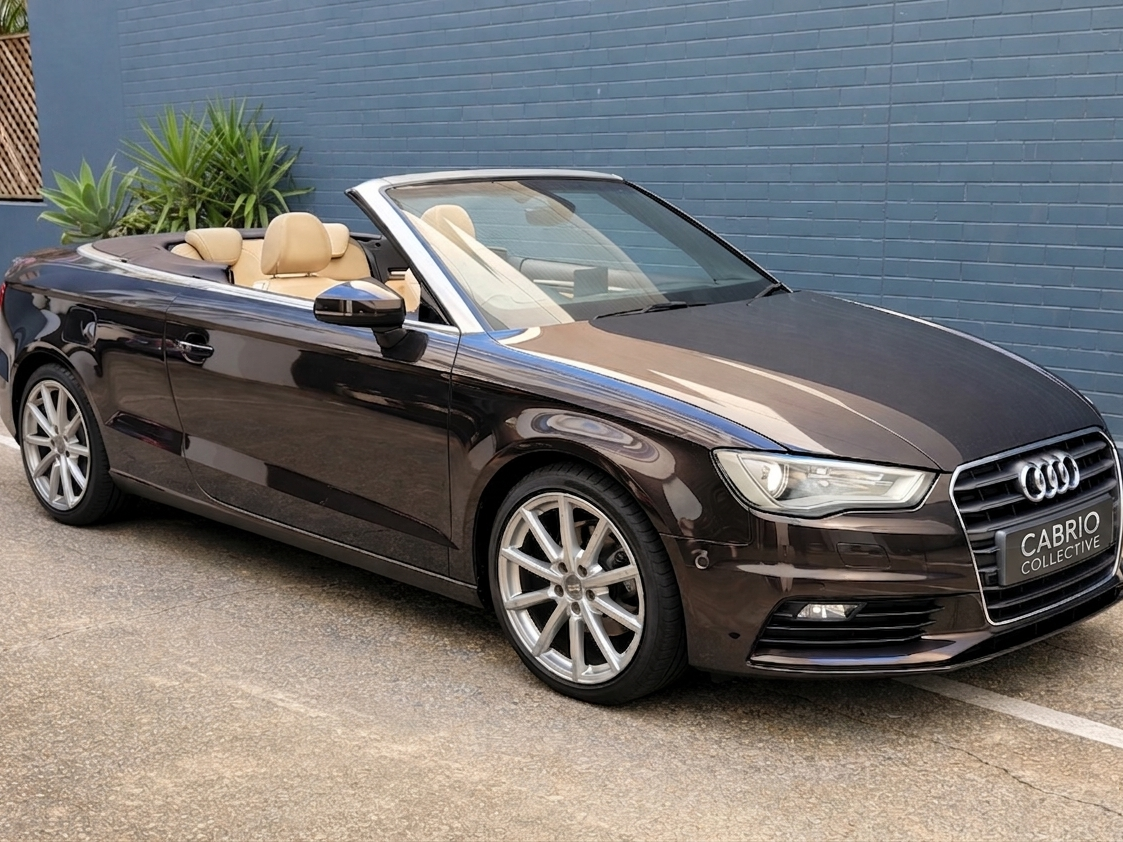 Audi A3 1.8 TFSI finished in an elegant dark brown colour with a stunning beige interior and spectacular brown soft top. This car presents in exceptional condition inside and out and has clearly been very well looked after.